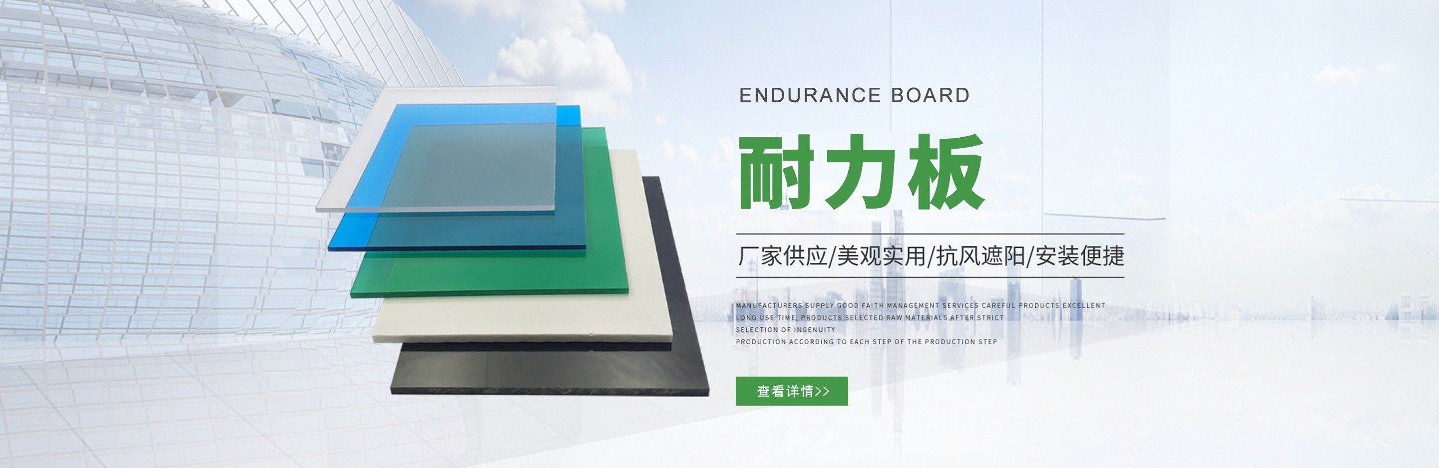 聊城市沐金塑膠有限公司注冊資金2180萬元,占地20000余平方,擁有自建廠房15000平方,員工100余名。10余年來,公司主營耐力板,鎖扣耐力板,耐力板深加工,無動力通風器,組合雨搭,PVC硬脂板,耐力板廠家等板材的發展戰略,逐漸成長為綜合性企業。  公司擁有多條板材共擠生產線,采用世界知名品牌進口原材料和先進工藝,依據完善的ISO9001質量管理體系和ISO14001環境管理體系,為產品的卓越品質提供了強有力的保證。憑借過硬的創新能力和堅實的硬件基礎,贏創已成為國內領先的熱塑性板材生產商,產品被廣泛應用于建筑業、農業、工業、廣告業、安防行業及DIY領域?! 」臼冀K致力于通過提供最優的板材應用解決方案,為客戶創造最高的價值;堅守創新、質量、靈活、服務和速度的核心價值觀;堅持“完美的產品需要完美服務的支持”的經營理念,努力實現成為世界領先的板材與解決方案供應商的夢想?! ≡谖磥?,公司將立足客戶需求,不斷改變和完善現有產品,拓展產品線和充分開發板材的應用領域,為客戶創造全方位的價值。同時更好地實現員工的價值,實現公司團隊的價值。我們將與您一起創贏未來!  企業使命:成為世界領先的板材與解決方案供應商?! 」驹妇埃和ㄟ^提供最優的板材應用解決方案,為客戶創造最高的價值?! 『诵膬r值觀:質量...